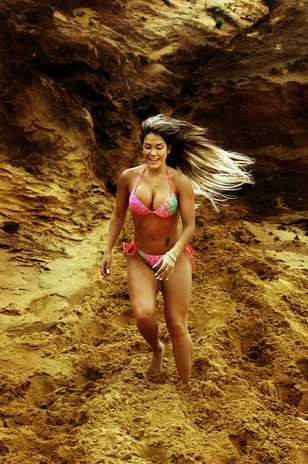 Gil Jung, apresentadora do programa Diário Quase Secreto, do Multishow, posou em uma praia da região Sul do Brasil. Nas imagens, ela aparece com um biquíni pequeno e, posteriormente, completamente nua, apenas segurando uma prancha.(Terra)